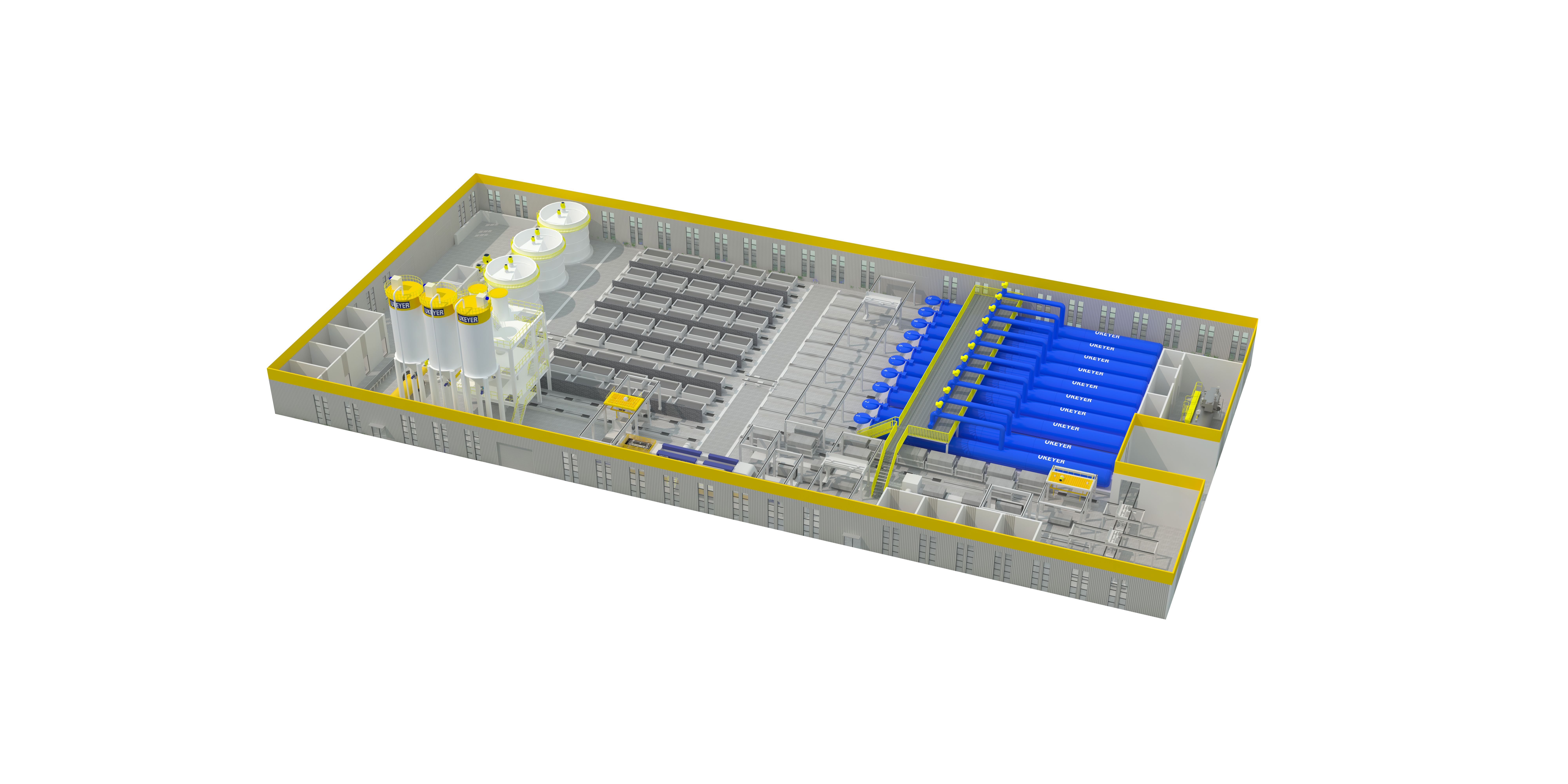 En la actualidad, UBlok cuenta con 16 bases de producción, que abarcan 11 líneas de producción de paneles de hormigón celular, 8 líneas de producción de bloques de hormigón celular, 5 líneas de producción de ladrillos estándar autoclave, 1 fábrica de fabricación de equipos, 6 hornos de cal de 300 toneladas y 1 fábrica de pasta de aluminio. La capacidad total de producción de productos de hormigón celular supera los 7 millones de metros cúbicos, de los cuales la capacidad de producción de paneles supera los 4 millones de metros cúbicos. La capacidad anual de producción de cal rápida es de 500,000 toneladas y la de pasta de aluminio es de 30,000 toneladas.